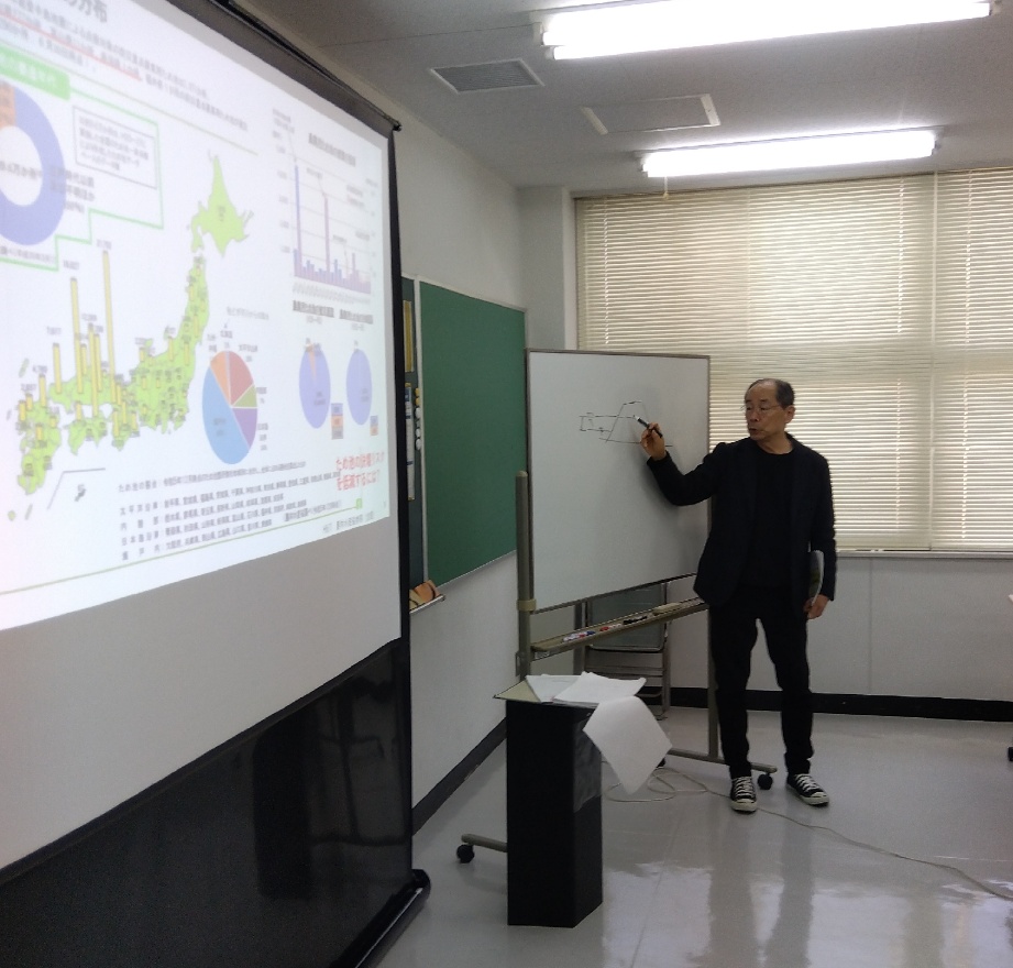 講義では、千葉県内のため池の現況や構造、被災のメカニズム、近年の防災・減災の考え方、設計基準改正の推移、さらにはため池評価の違いや廃止基準における留意点など、盛りだくさんの内容を時間いっぱい説明しました。